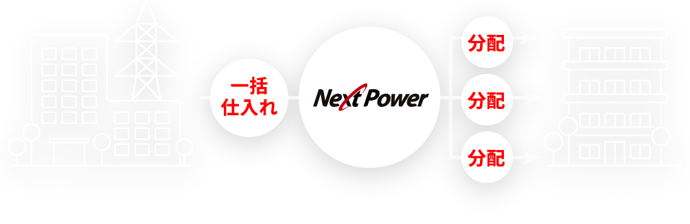 Next Powerは、「マンション高圧一括受電サービス」と「NPでんき」を柱として、人々の暮らしに欠かすことのできない電力供給の一端を担っています。
